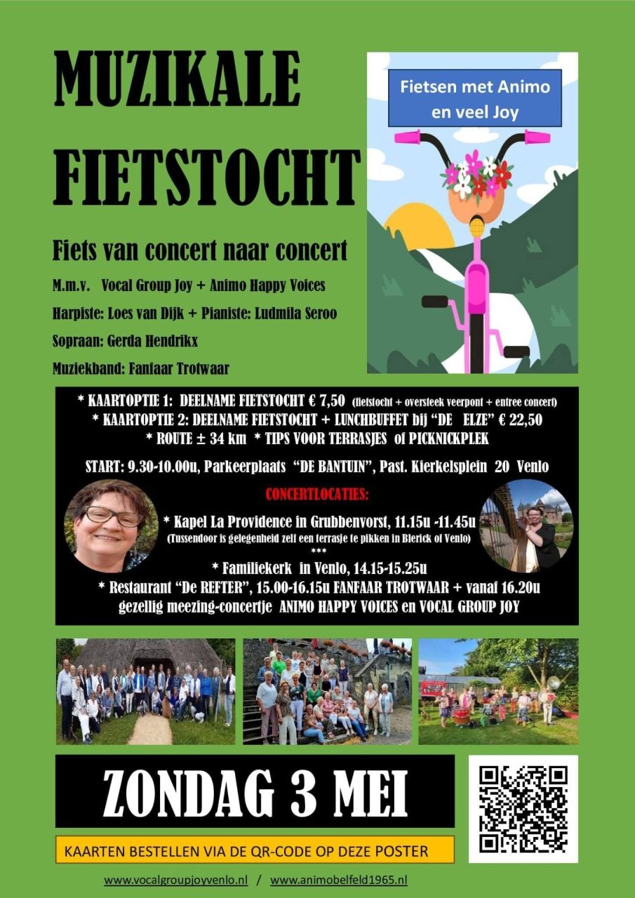 Muzikale fietstocht m.m.v. Vocal Group Joy , Animo Happy Voices en anderen.
