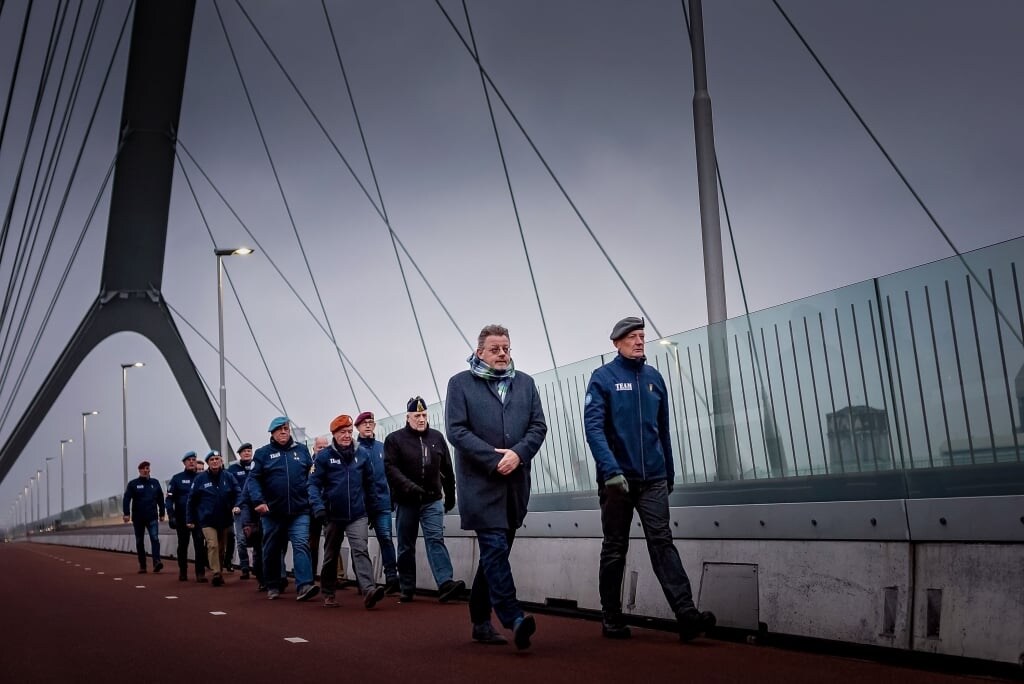 Vier Solassers gaan bij zonsondergang de Sunsetmars lopen met een Veteraan. Je bent van harte uitgenodigd om je aan te sluiten bij deze bijzondere herdenking, die sinds 2014 elke avond plaats vindt. Elf jaar geleden heeft Nijmegen een nieuwe Stadsbrug geopend, De Oversteek – vlakbij het deel van de Waal waar 20 sept 1944 Amerikaanse militairen in het kader van Market Garden de Waal overstaken olv generaal James Gavin. Tijdens deze Waalcrossing zijn 48 militairen omgekomen …. voor de vrijheid van het Nederlandse volk hebben zij hun leven geofferd. Het waren voornamenlijk jongens van het Amerikaanse platteland, waar toen grote armoede heerste – de soldij was zeer welkom bij de ouders. Sinds 2014 wordt als eerbetoon – elke avond – een Sunsetmars gelopen, in het tempo van 48 lichtmasten die op de brug worden ontstoken.